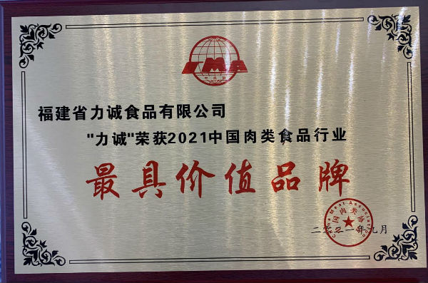 筆者從會上獲悉,總部位于晉江五里工業(yè)區(qū)的福建省力誠食品有限公司(以下簡稱“力誠食品”),先后榮獲2021年度中國肉類食品安全信用體系建設示范項目信用體系示范企業(yè)、2021年中國肉類食品行業(yè)先進企業(yè)以及2021年中國肉類食品行業(yè)最具價值品牌三大重量級獎項。